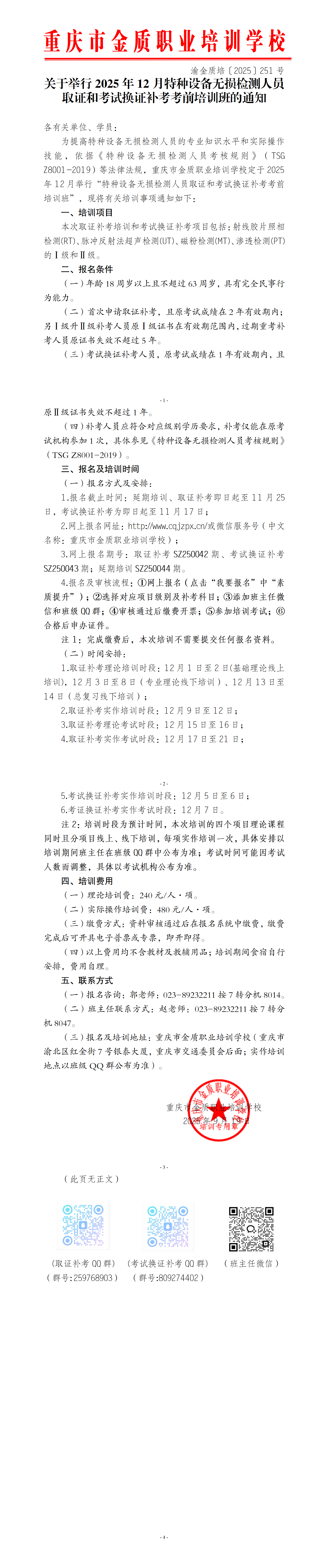 渝金质培〔2025〕251号关于举行2025年12月特种设备无损检测人员取证和考试换证补考考前培训班的通知.pdf