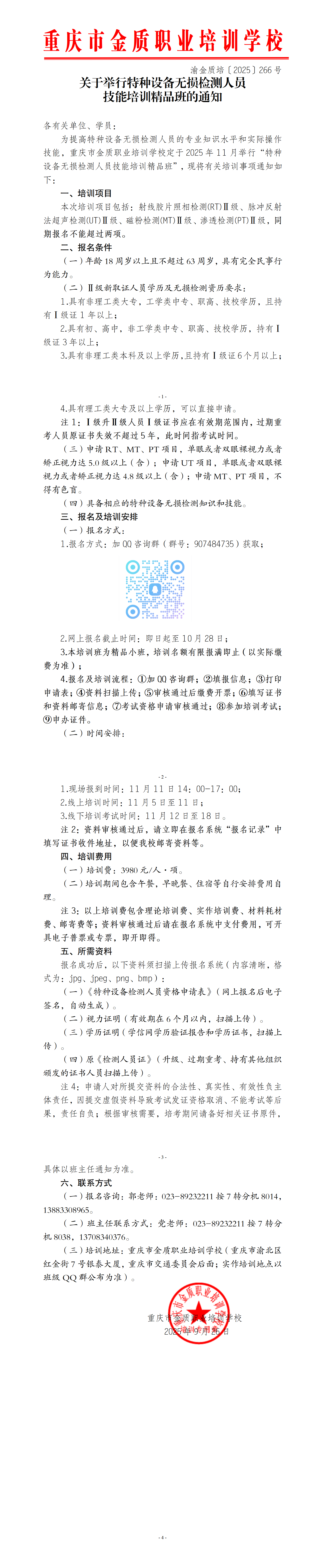 渝金质培〔2025〕266号关于举行特种设备无损检测人员技能培训精品班的通知.pdf