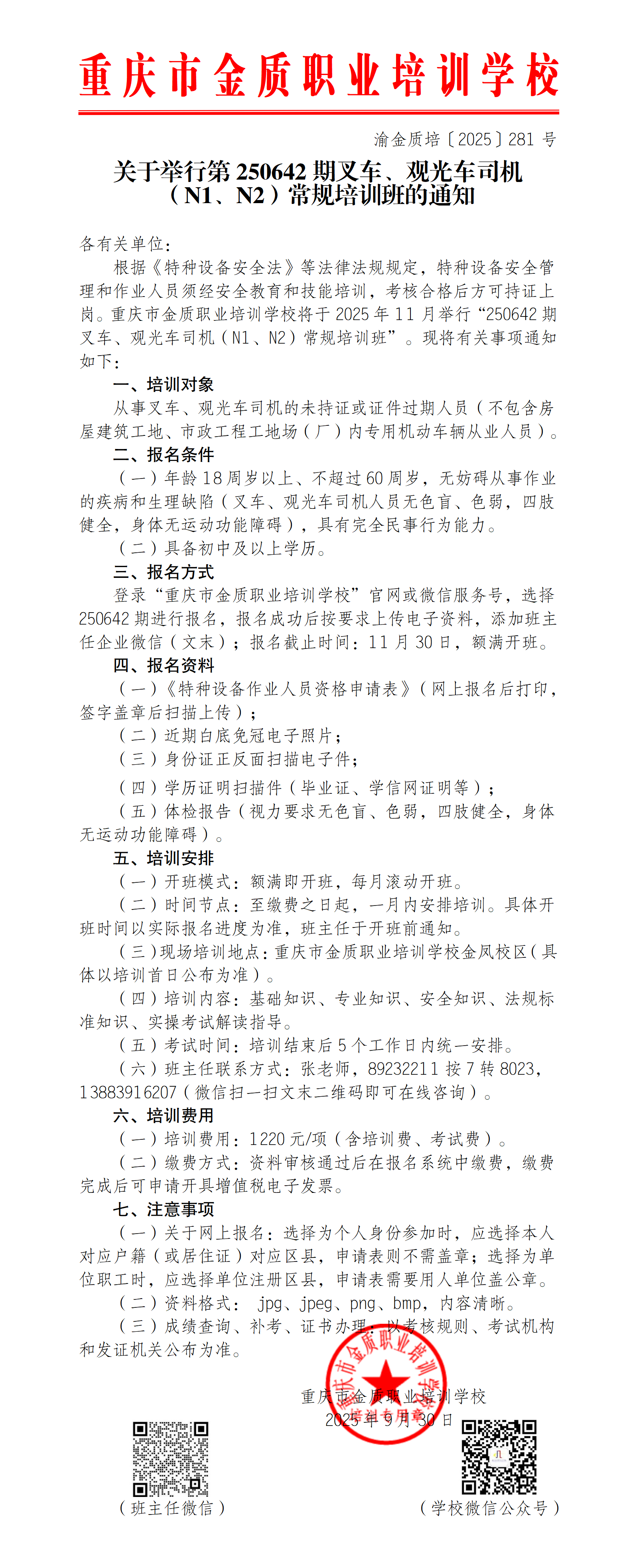 关于举行第250642期叉车、观光车司机(N1、N2)常规培训班的通知.pdf